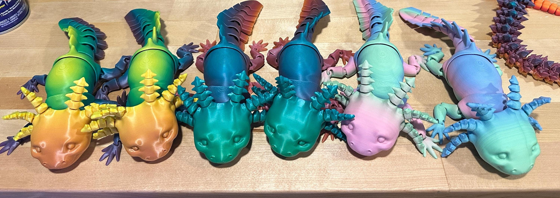 At an impressive 10” long, this axolotl is a larger 3D print, making it a standout piece in any collection. Its articulated joints allow for fluid movement, and the size ensures it’s both a delightful toy and an eye-catching decor item. Make sure to compare sizes to other vendors to see just how impressive this axolotl is!