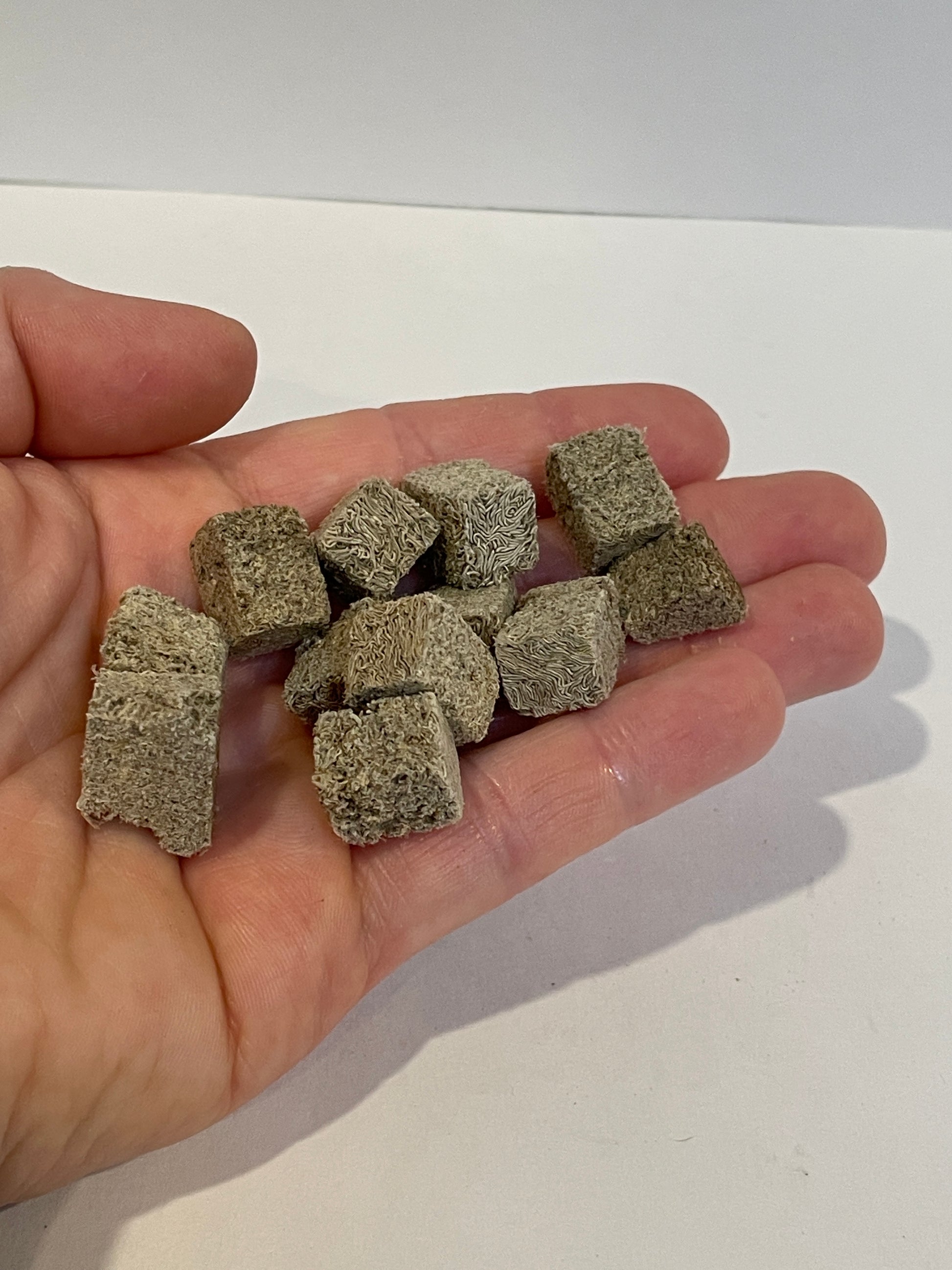 Ingredients: Tubifex worms, vitamin E supplement, L-ascorbyl-2-polyphoshate (stabilized vitamin C), thiamine mononitrate, riboflavin (Vitamin B2), pyridoxine hydrochloride, vitamin B12 supplement.
