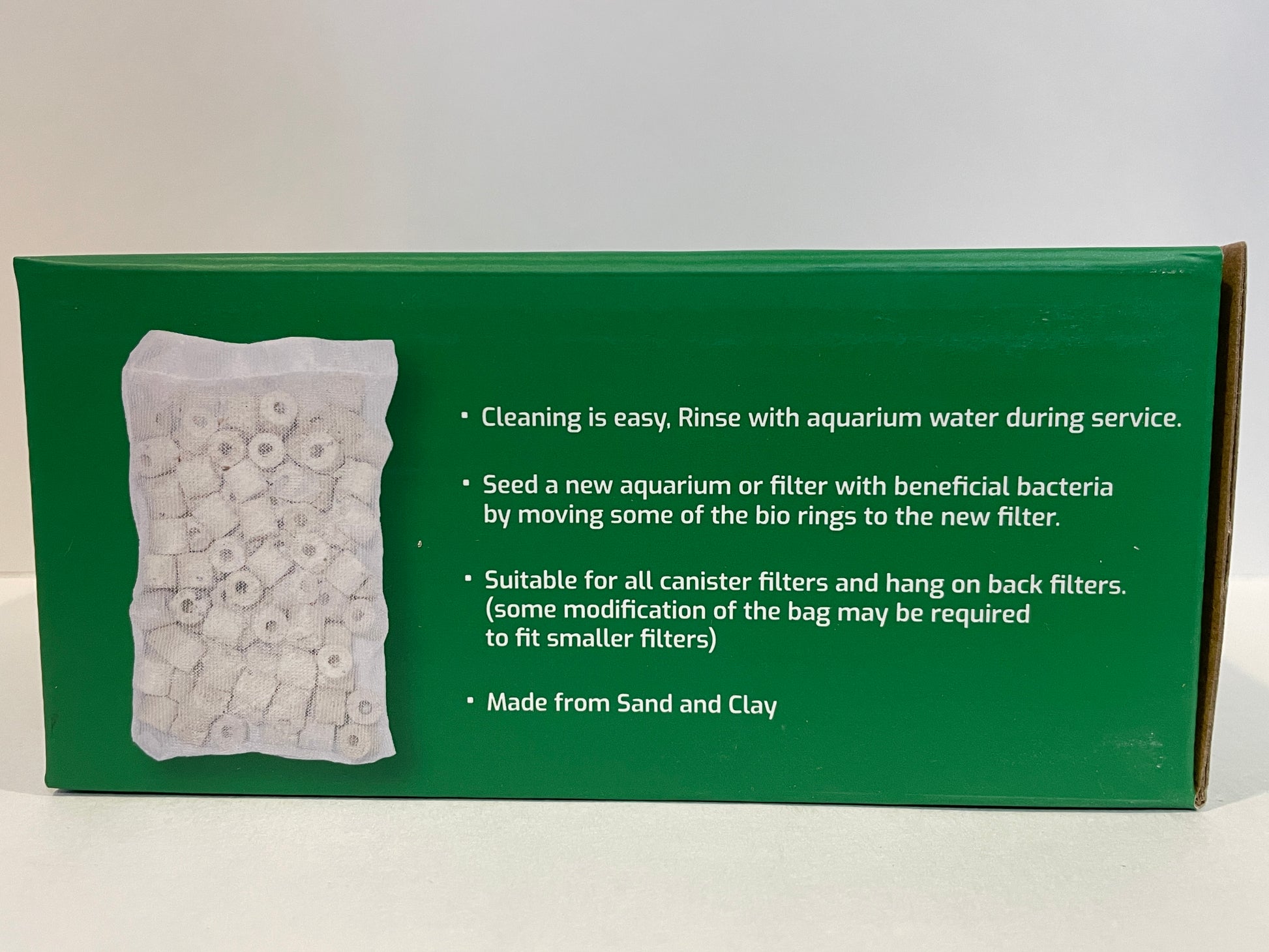 Beneficial bacteria are the key to a healthy aquarium system as they effectively remove toxic ammonia and nitrite from the water column. Improve the good bacteria count in your aquarium by adding bio rings to your filter. They are great for use in canister filters, hang on back filters, sumps and more. The shape and porous design of these rings is intended to maximize the amount of surface area for beneficial bacteria to live and for water to flow freely through the rings.