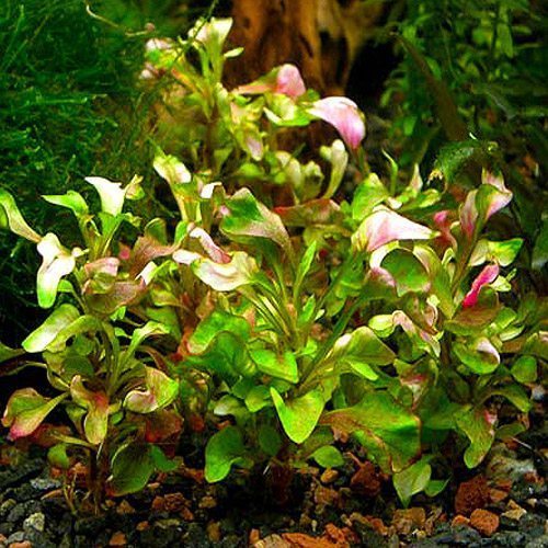 Popular red stem plant with deep cherry coloration that adds contrast to planted aquariums. Grows upright and responds well to trimming; color intensity varies with lighting and nutrients.