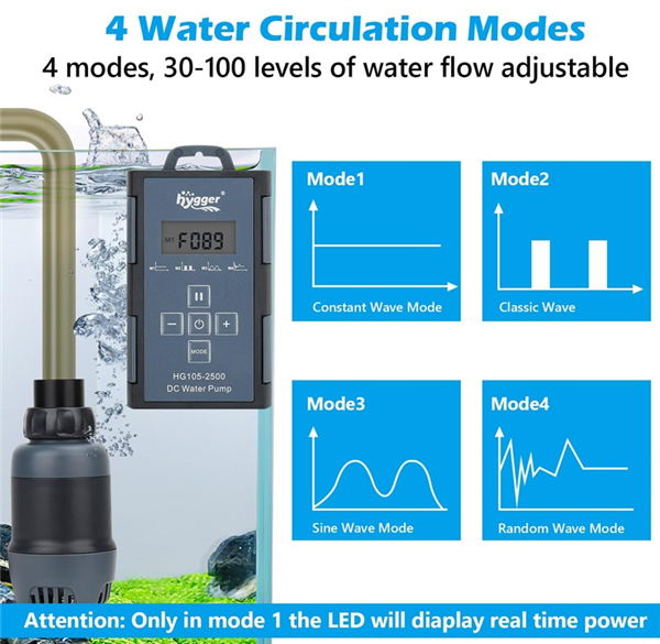 Hygger DC water pump has five operating modes that can be set: