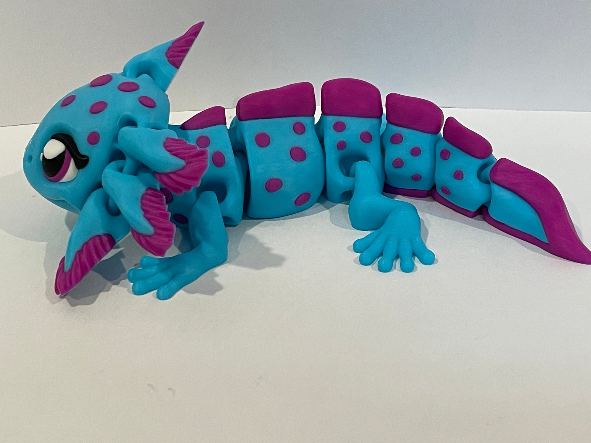 Stunning articulated Axolotl with big beautiful eyes and charming smile. Can be ordered in any color combination. Just message us.