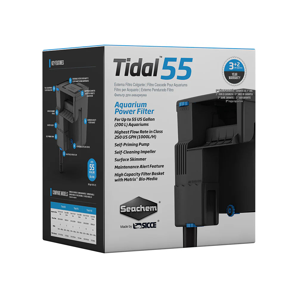 Tidal™ Power Filters are designed from the ground up to provide your aquarium with high-quality, comprehensive filtration. They are easy to use and adaptable to a variety of aquarium conditions. With a host of features including a self-priming pump, dual water intake with surface skimmer, adjustable flow, maintenance monitor, self-cleaning impeller, and a filter basket that holds any kind of filtration media - and more of it - Tidal™ Power Filters are designed to deliver the highest water quality possible with maximum versatility and ease of use.