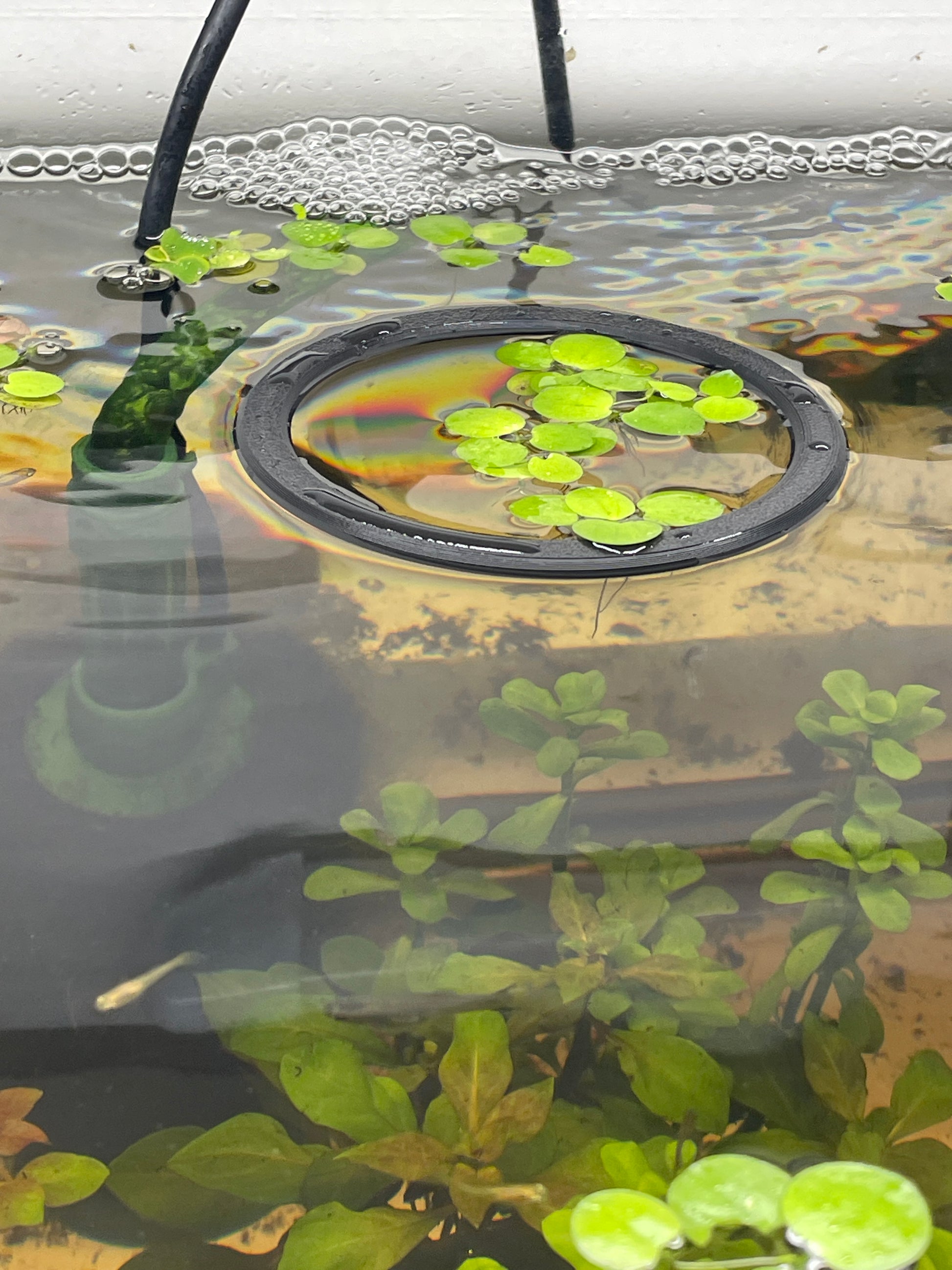 There rings are perfect to keep your floating food and floating plants from being pulled into your filter. Simply place them on top of the water and put the food or the plants inside. One ring is 5 inches inner diameter and the other is 3 1/2 inches inner diameter.