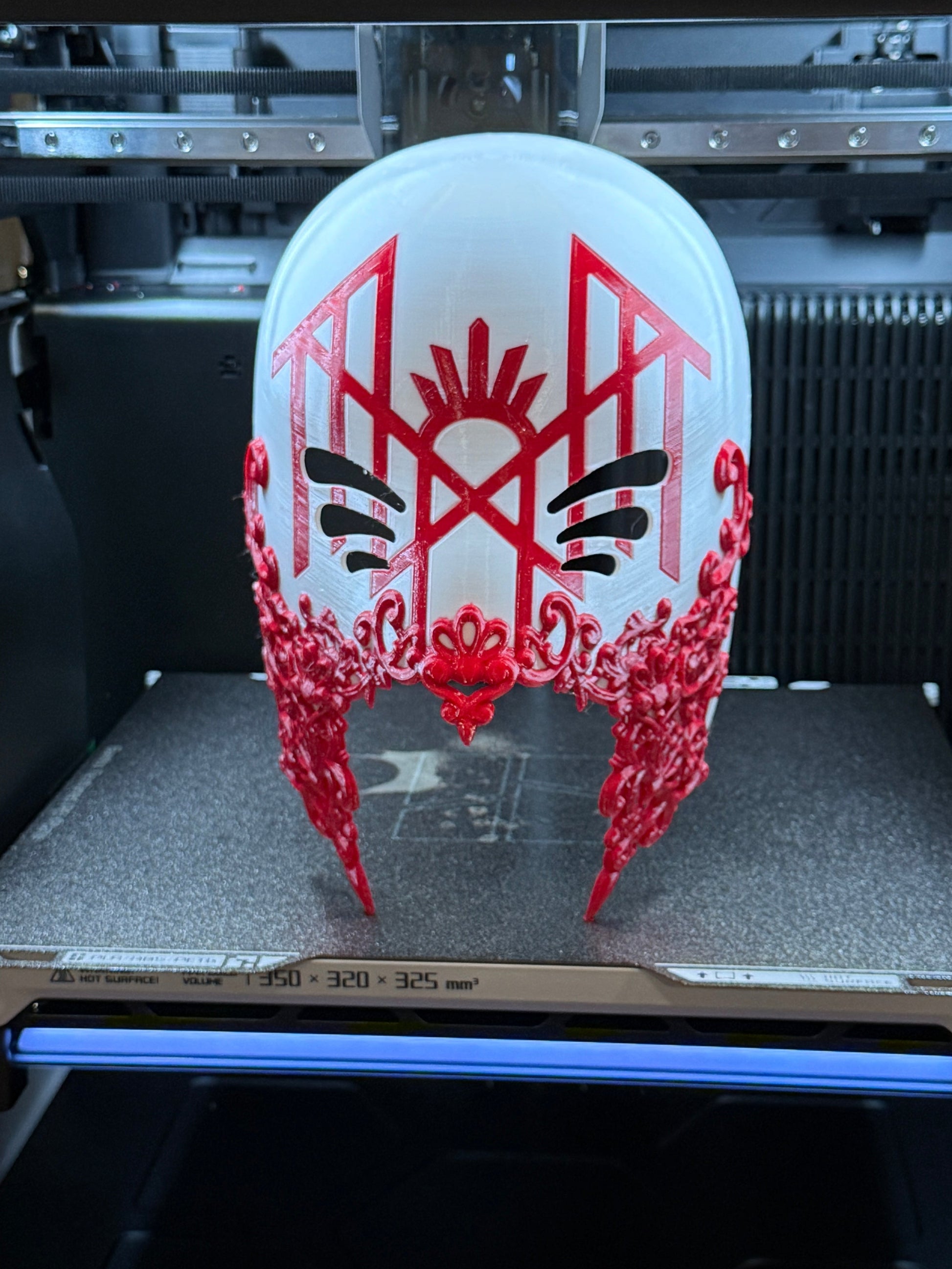 Sleep Token Vessel inspired cosplay mask 3d printed in PLA/ABS material to be durable and heat resistant. Can be worn as is (Even comes with an elastic strap and some bit of padding) or add your own additional paint and padding for extra flair and comfort.