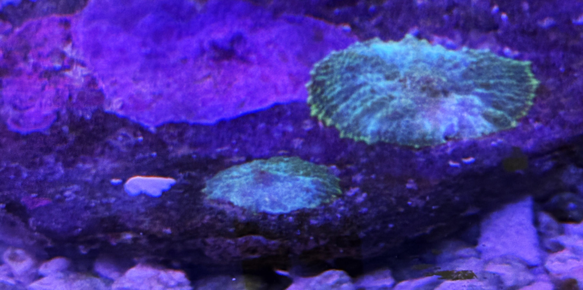 WYSIWYG Green Rhodactis Mushroom 2 Attached to Rock